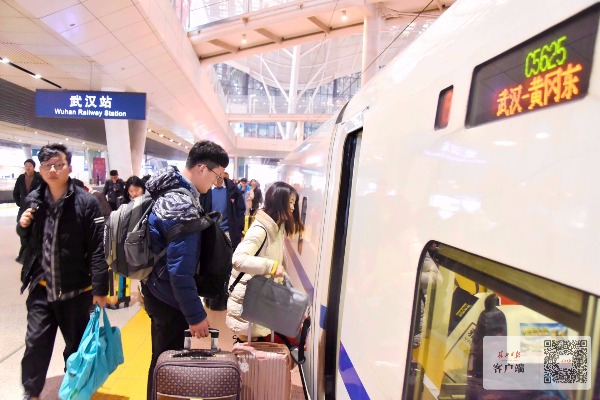 31日,武鐵加開至廣州、上海、北京、宜昌等地列車共113列提升運力。武漢火車站加開荊州、宜昌、黃岡、黃石等熱門方向動車10趟,繼續加開廣州、上海到武漢的夜行高鐵7趟。2月1日,武鐵還將加開漢口至重慶D4055次、漢口至上海D4588次等53列動車,武昌至北京西Z4178次、漢口至溫州K4558次等45列普速客車共98列提升運力。