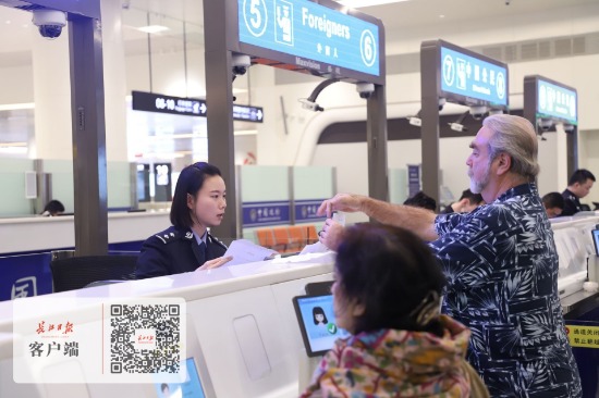 圖為邊檢民警正在為出入境旅客服務。通訊員狄華強 攝