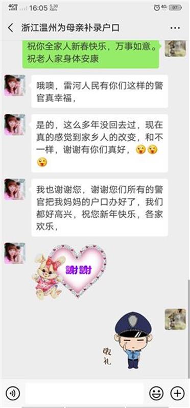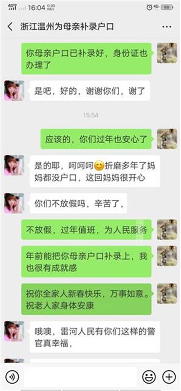 微信是遠在浙江溫州的陳女士發來的,專門感謝民警為她的母親劉全娥解決了25年黑戶身份的困擾。