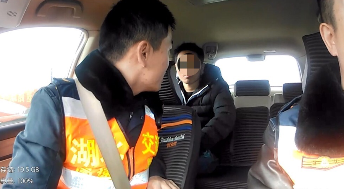 路政員做好現場安全警示,勸他離開返鄉車流集中的高速公路,但小伙子顯得精神恍惚。袁強華不敢大意,決定先把他請上路政車帶離高速。