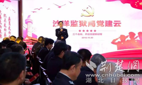 工作人員現場演示“沙洋監獄局黨建云”平臺各大功能及操作流程。省監獄管理局組宣處供圖