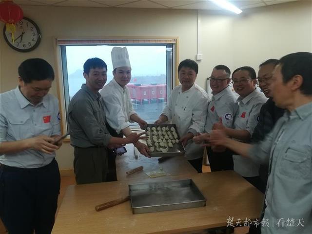 據悉,南極長城站現共有41人,由武漢商學院教師戴濤和優秀畢業生張磊兩人擔任廚師,他們早早就開始為科考隊員準備大年三十的年夜飯。“過年對咱中國人來說是個大日子,隊員們都不能回家,我們只能在年夜飯上下點功夫,慰藉一下大家的思鄉之情。”戴濤笑著說。