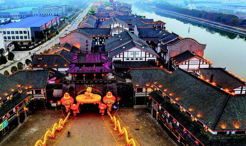 圖為:2月1日黃昏,宜昌市夷陵區龍泉鎮古色古香的建筑群在傳統花燈的輝映下,節日氣氛漸濃。(湖北日報全媒記者劉曙松 攝)