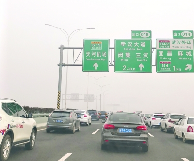 初一,武漢出現大霧天氣,上午9時左右,機場高速出現團霧,車輛大部分打開霧燈緩慢行駛長江日報記者楊濤 攝
