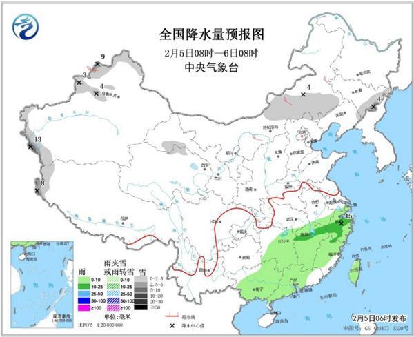 今明天,中東部的降水基本穩定在長江以南,多以小雨或中雨為主,像是今天,江西東北部、浙江大部和福建西北部等地部分地區都將有中雨。7-9日隨著冷空氣東移南下,中東部的雨雪將會增多。