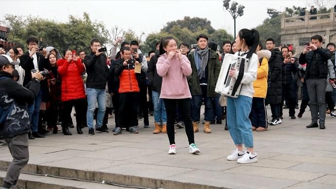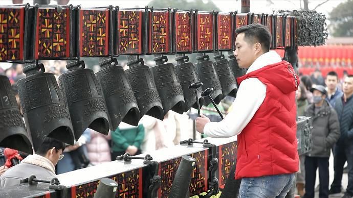 長江邊,樓閣下,年味正濃。流轉千年的編鐘編磬,用雄渾空靈的樂章,將人們的注意力從喧鬧的春節氛圍中聚攏。一曲《我和我的祖國》把家和國緊緊相系,聯結在了一起。從驚喜意外到心潮澎湃,全場近千人在新春佳節向祖國深情表白。