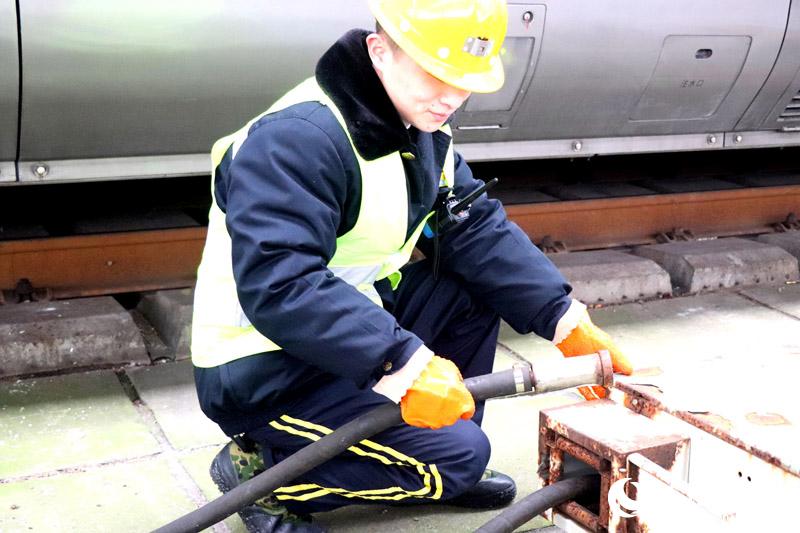 工作完后準(zhǔn)備給下一趟列車上水。陳曉燕 攝