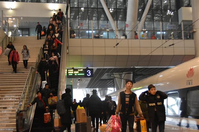 上午9時20分,武漢站16站臺上,從宜昌到武漢的D5851次列車下來的不少旅客,正在站臺工作人員的引導下到候車室進行中轉換乘。“年前買到了今天去深圳的高鐵票,今天在站內中轉很方便”,荊州的楊先生說。