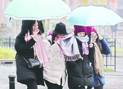 2月7日,武漢雨霧交織,北風勁吹,氣溫較前幾日有較大下降。圖為江漢路步行街上,市民穿著厚實的冬裝出行 長江日報記者李子云 攝
