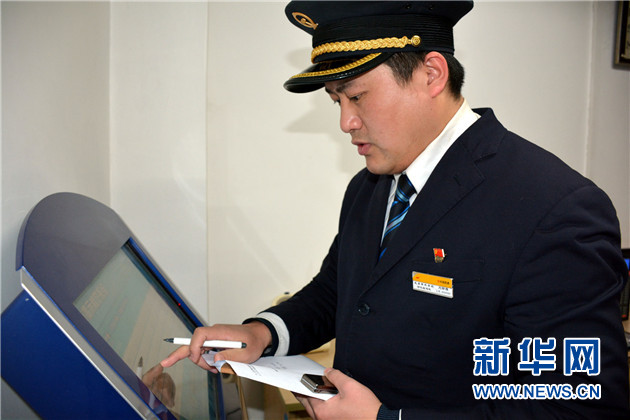 圖為:2月8日,動檢車司機劉靜雅在核對運行信息。新華網發 盧殿濤 攝