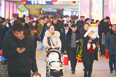 9日,大年初五,漢口火車站返程呈現小高峰,主要是從宜昌、荊州等地來的到達客流。同時,往上海方向的客流也出現上升,不少旅客為避免節后高峰,提前返程(長江日報記者詹松 通訊員代能躍 攝)