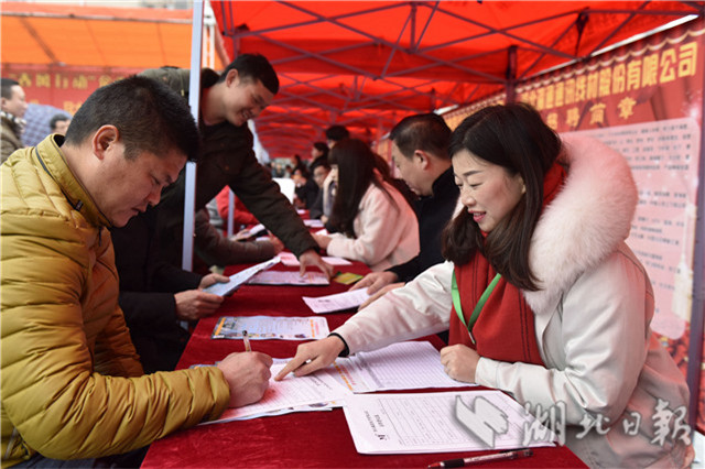 2月12日,湖北省通城縣2019年推動返鄉就業,助力脫貧攻堅暨“春風行動”,企業用工現場招聘會現場。