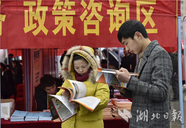 2月12日,求職者在通城縣新春首場企業用工招聘會上咨詢應聘。