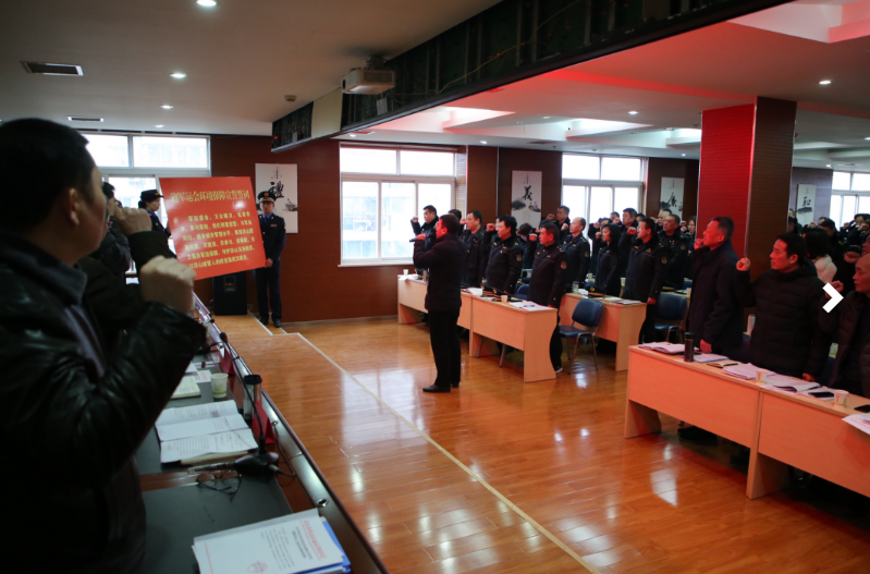 “軍運(yùn)盛會(huì),萬(wàn)眾矚目,我輩有幸,參與籌創(chuàng)。我們鄭重宣誓:與軍運(yùn)同行,提升城市管理水平,展現(xiàn)洪山靚麗風(fēng)貌。同建設(shè)、共參與、講奉獻(xiàn),全力服務(wù)軍運(yùn)保障,守護(hù)洪山潔凈靚美,以城管人的擔(dān)當(dāng)添武漢榮光!”在宣誓環(huán)節(jié),區(qū)城管委主任胡毅帶領(lǐng)全體領(lǐng)導(dǎo)干部舉起右拳,作出莊嚴(yán)承諾。胡毅表示,當(dāng)前軍運(yùn)會(huì)各項(xiàng)工作已進(jìn)入了最后沖刺階段,越到后期,軍運(yùn)會(huì)各環(huán)境保障任務(wù)將越重,壓力將越大。要想牽頭帶領(lǐng)全區(qū)大城管成績(jī)打翻身仗、做好軍運(yùn)會(huì)環(huán)境保障工作,需要全體洪山城管人在2019年更加注重作風(fēng)建設(shè),讓過(guò)硬的作風(fēng)促進(jìn)全區(qū)大城管成績(jī)提升。