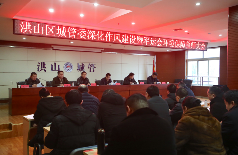 新年伊始,萬(wàn)象更新。為落實(shí)全面從嚴(yán)治黨、馳而不息糾正“四風(fēng)”問(wèn)題、以作風(fēng)建設(shè)推動(dòng)大城管及軍運(yùn)會(huì)環(huán)境保障工作,2月12日上午,洪山區(qū)城管委召開(kāi)了深化作風(fēng)建設(shè)暨軍運(yùn)會(huì)環(huán)境保障誓師大會(huì)。區(qū)政府副區(qū)長(zhǎng)趙陟、區(qū)政府總值班室(應(yīng)急辦)主任池繼鋒、區(qū)軍運(yùn)會(huì)專(zhuān)班負(fù)責(zé)人余冰出席會(huì)議。會(huì)議由黨委書(shū)記談華宇主持,區(qū)城管委領(lǐng)導(dǎo)班子及全委副科以上干部共計(jì)110余人參加會(huì)議。