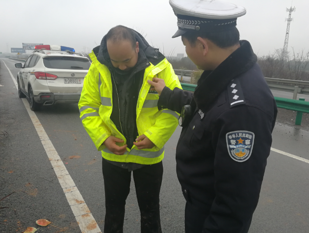 在事故現(xiàn)場,天空下著小雨,氣溫只有2度,濕冷難耐,魏師傅為了守住貨物一直不肯離開,而且他的手機沒電也無法與家人聯(lián)系,他冷的瑟瑟發(fā)抖,焦急又無奈。處理事故的民警趕緊把自己的黃色雨衣脫下來給魏師傅穿上,為其遮風(fēng)擋雨,還給他的手機充電,并將警車上的食物熱水給他,一時間讓魏師傅身心倍感溫暖。