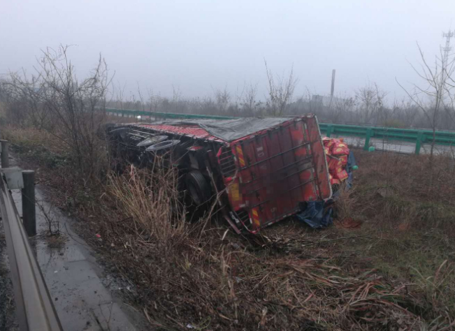 2月12日凌晨1點時許,一輛滿載西瓜從海南前往北京的大貨車,途徑京港澳高速咸寧段時,因雨天路滑、操作不當(dāng)導(dǎo)致車輛側(cè)翻在高速公路上。接警后, 湖北高警咸寧大隊民警迅速前往事故現(xiàn)場處置。