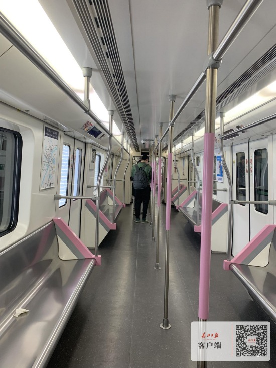 長江日報(bào)記者在現(xiàn)場看到,站臺由以往單邊上下變?yōu)殡p邊雙向上下,乘客之間的多沖現(xiàn)象已沒有,大家有序地上下,這有效緩解了光谷廣場站長期擁擠的狀態(tài)。