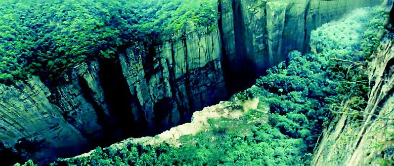 裂縫形成的懸崖,是《鬼吹燈之怒晴湘西》的一個(gè)重要場景,因?yàn)閼岩赡故揖驮趹已轮拢稁X眾人與搬山道人分別使用“蜈蚣梯”和“鉆天索”,從懸崖處下崖。