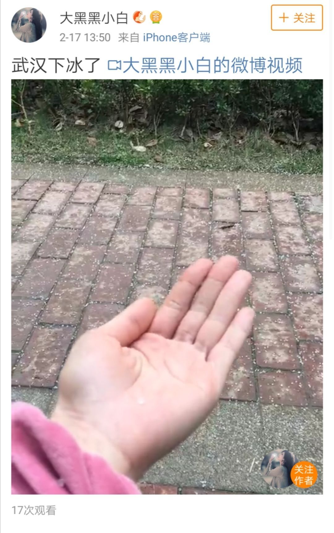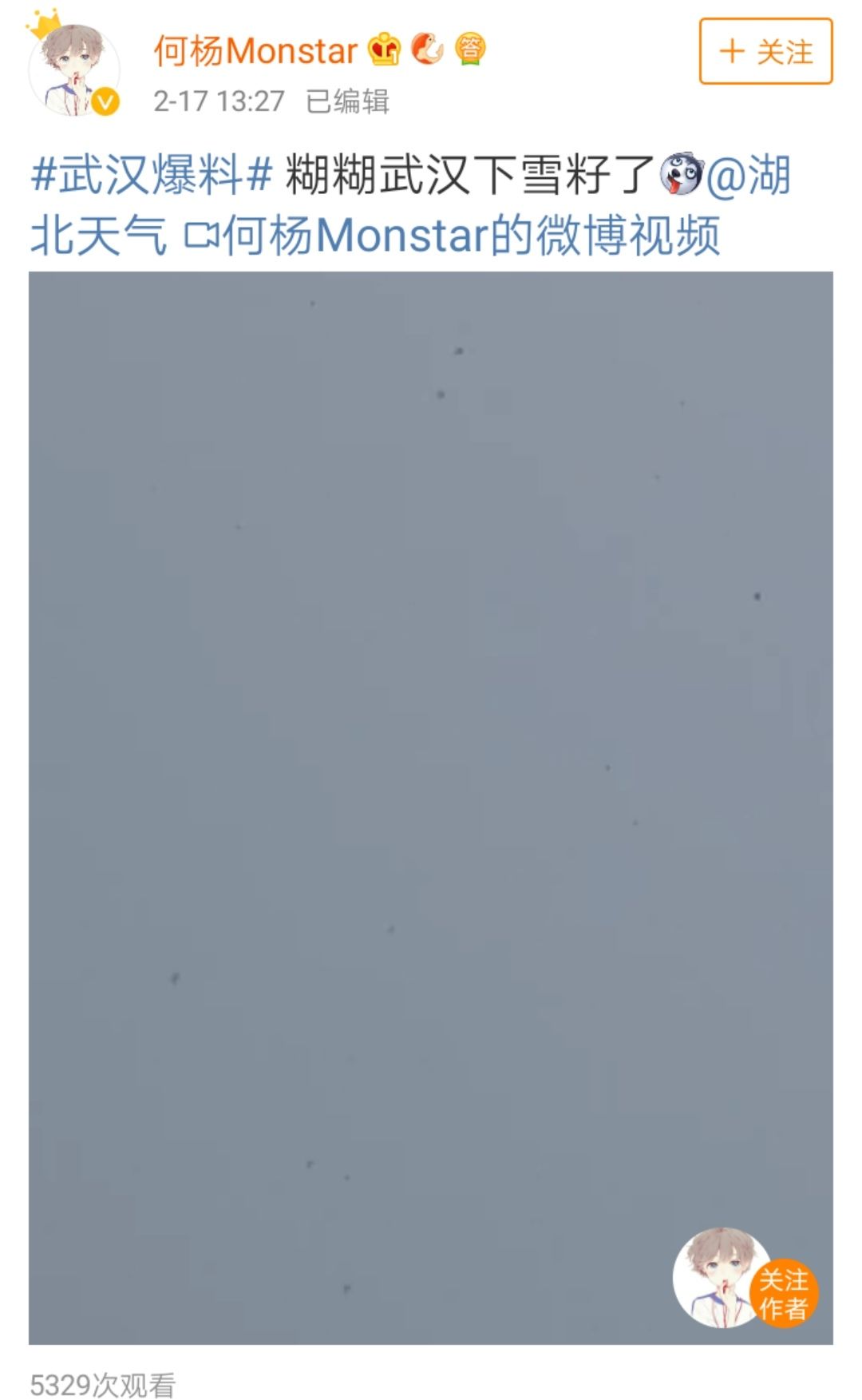 今天武漢下的是雪子。