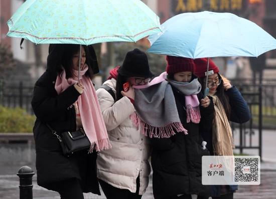 圖為江漢路步行街上,市民穿著厚實(shí)的冬裝出行。記者李子云 攝(資料圖)
