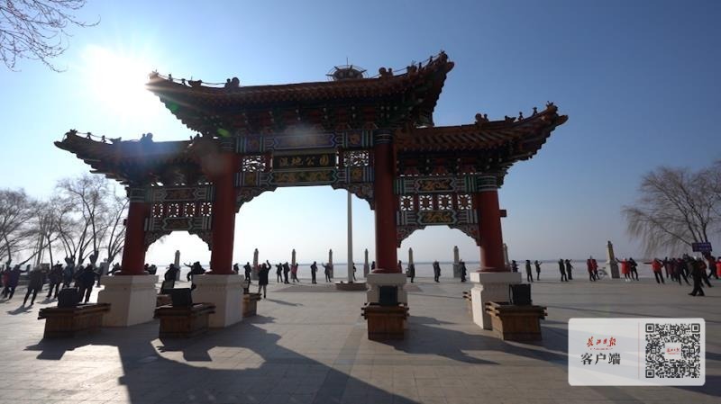 2月11日,長江日報記者來到哈爾濱市木蘭縣臨江廣場,廣場邊的江面封凍未開。