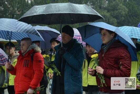 如今在中國地質大學(武漢)讀研的弗拉德,來自俄羅斯南部的伏爾加格勒市。一年前的清明節,他就曾來到這里緬懷祖國的烈士,“我在俄羅斯時就聽說過這段歷史,今天上完課參加這次活動,讓我對祖國的先輩們有了更深的崇敬。”