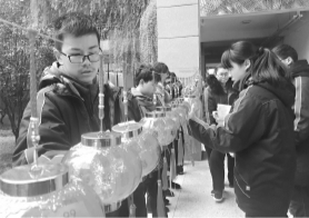 湖北省武昌實驗中學(xué)學(xué)生們一進(jìn)校門就猜起燈謎 校方提供