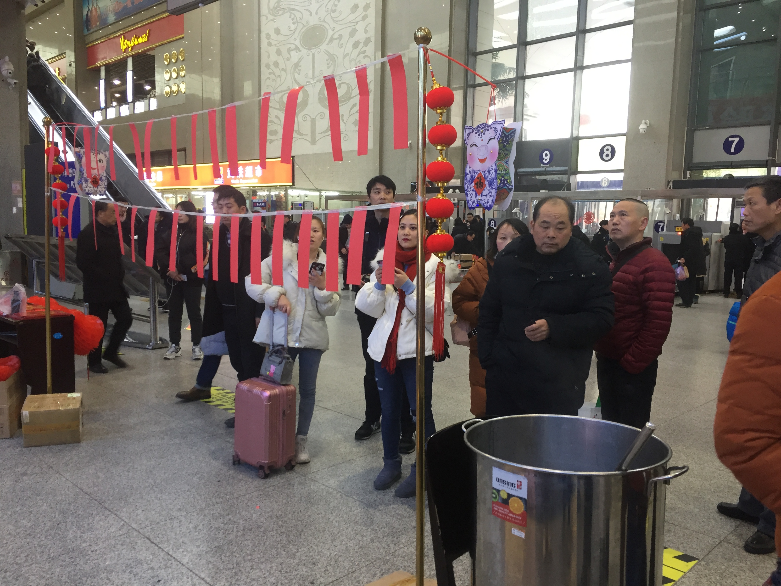 “湯圓來嘍......”打著滾的熱乎湯圓,由車站工作人員一份一份的盛到碗里,送到南來北往的旅客手里,旅客們細細品嘗著工作人員的手藝,不時的點贊,暫時忘卻了旅途的疲勞。