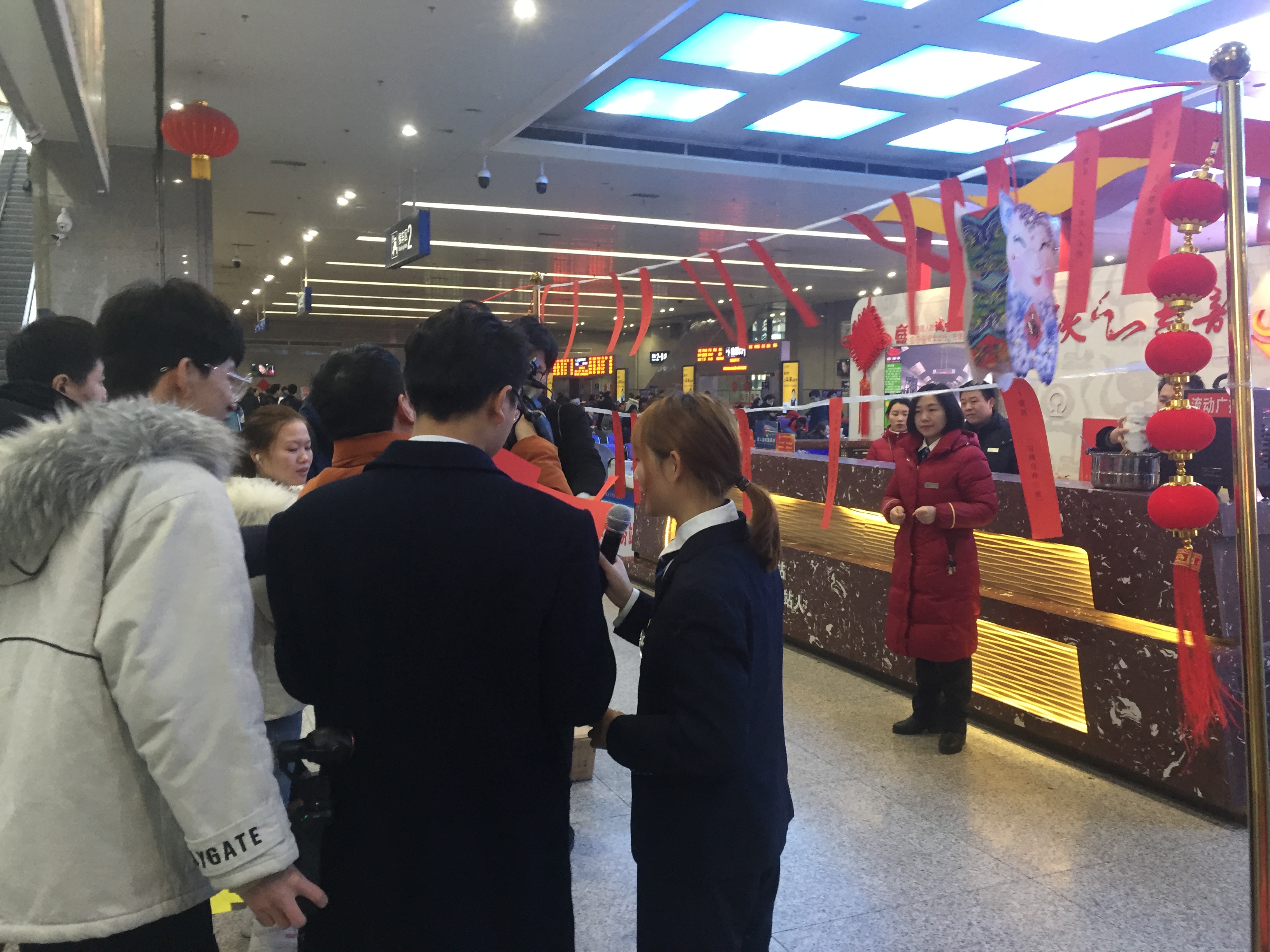 候車室里,旅客們熱情高漲,活動還沒開始,580服務臺前方懸掛的燈謎就被“搶”了個精光。