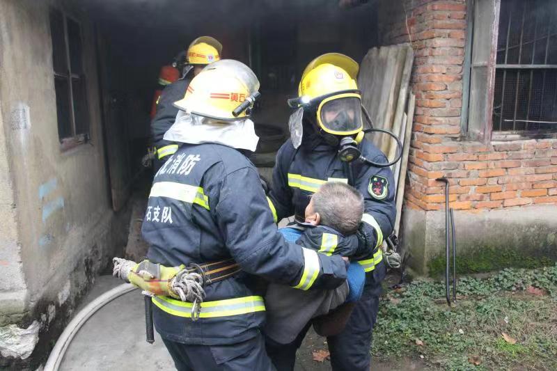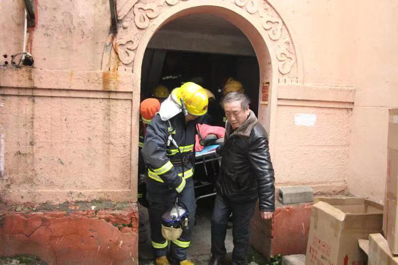 14時53分,消防指戰員到達現場后,立即開展偵查工作,發現該起火房屋火勢正處于發展階段,四周煙霧彌漫,據現場報警人稱,發生火災的住宅內住有一位80多歲的獨居老人且行動不便。當得知此情況后,指揮員立即撥打120急救電話,并下達作戰命令:搜救組進入房間內部尋找被困老人,滅火組利用水槍進行滅火掩護。三分鐘后,消防員在起火房屋一間臥室找到被困老人,消防員立即將老人抬上救護車進行救治。
