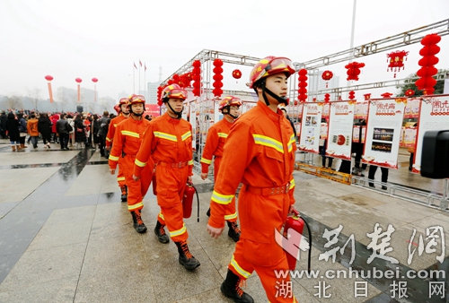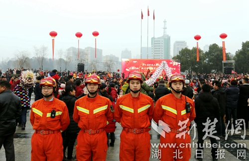 在第七屆香城大舞臺(tái)“春潤(rùn)香城﹒啟航2019”咸寧市元宵節(jié)城鄉(xiāng)文化聯(lián)盟大聯(lián)動(dòng)現(xiàn)場(chǎng),咸寧市消防救援支隊(duì)三號(hào)橋執(zhí)勤點(diǎn)一普通消防員張意說:“這是我堅(jiān)守在元宵安保崗位的第十個(gè)年頭,不能和家里人團(tuán)聚,我感到愧疚,為了能讓咸寧人民過上一個(gè)美好團(tuán)圓的元宵節(jié),我依然堅(jiān)守在崗位,保衛(wèi)一方平安!”了解到,在元宵節(jié)最熱鬧的時(shí)候,消防員要一直在廣場(chǎng)站立8個(gè)小時(shí),直到游人逐漸離去,他們才能回去休息。