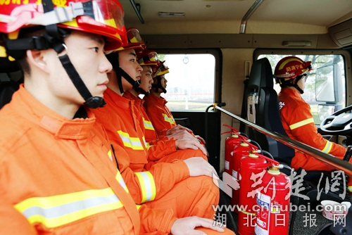 圖為消防員在消防車?yán)飯?zhí)勤現(xiàn)場(chǎng)。通訊員 朱燕林?jǐn)z