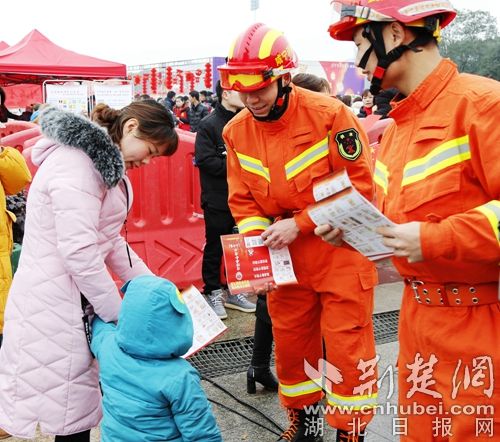 圖為消防員在元宵節(jié)活動(dòng)現(xiàn)場(chǎng)發(fā)放消防宣傳單。通訊員 朱燕林?jǐn)z