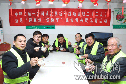 荊楚網(wǎng)客戶端—荊楚網(wǎng)消息(通訊員 周俊 黃鵬程)吃湯圓、猜燈迷、看晚會(huì)……2月19日,武漢軍運(yùn)會(huì)保障項(xiàng)目吳新干線的建設(shè)者因搶工無法與家人團(tuán)聚過元宵節(jié),項(xiàng)目部便將他們聚在一起度過一個(gè)歡樂祥和的元宵節(jié)。