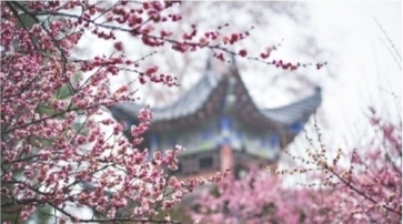 華中師范大學,梅花簇擁著梅亭,可在此聽雨聲,聞花香,品詩,觀景