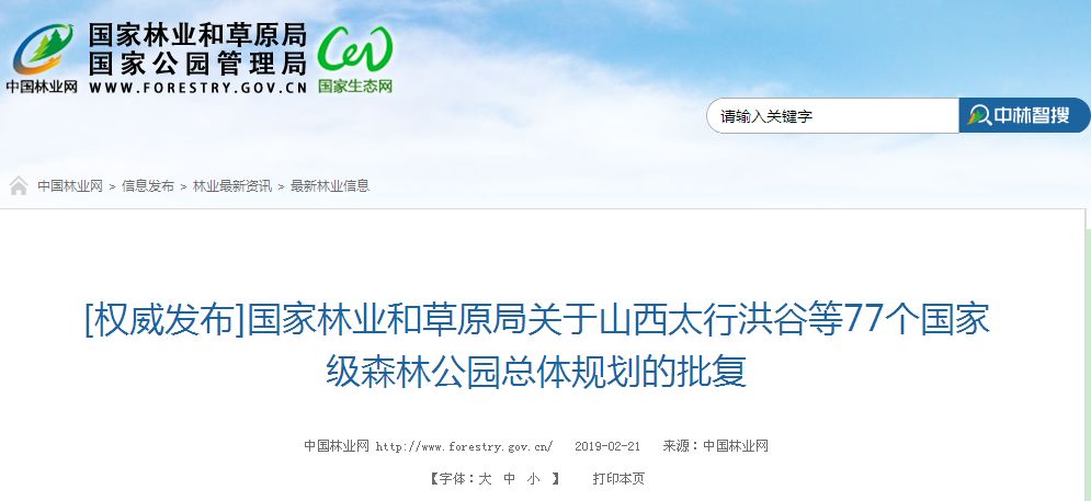 2月21日,中國林業網發布了《國家林業和草原局關于山西太行洪谷等77個國家級森林公園總體規劃的批復》,其中湖北崇陽國家森林公園、湖北西塞國國家森林公園毛峰洞片區和湖北安陸古銀杏國家森林公園在列!