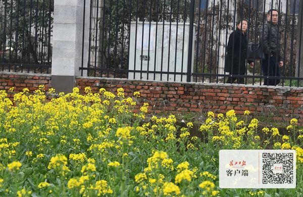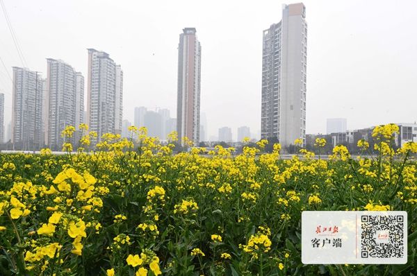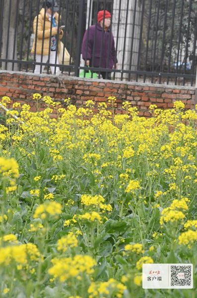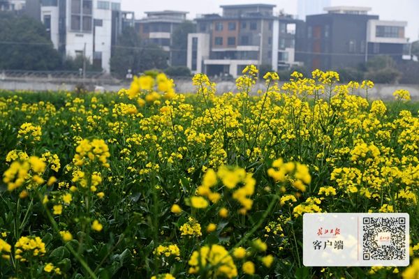 長江日報融媒體1月25日訊(記者李子云)2月25日,早春二月,在武昌團結大道旁的一片田地上,金黃的油菜花隨風飄送清香。來來往往的市民,在鬧市街頭看到這一片嫩黃的花海,不由得心曠神怡。雖然不如鄉間野外的油菜花田浩瀚、壯觀,但也是城市里一道亮麗的風景線。讓久居城里的都市人不用遠行,閑暇之余就可以走進油菜花田,與大自然來一次親密接觸。
