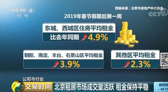 據北京市房地產中介協會的統計數據顯示,今年春節假期后第一周,東城、西城區住房平均租金比去年同期上漲4.9%,朝陽、海淀、豐臺、石景山區平均租金上漲3.9%,其他區平均租金上漲2.3%。