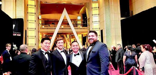 圖為:《沖破天際》主創團隊在奧斯卡頒獎典禮現場。(圖片由太崆動漫公司提供)