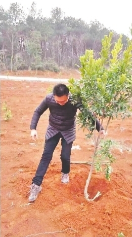 村扶貧工作隊隊長陳競陽在荒山上植樹
