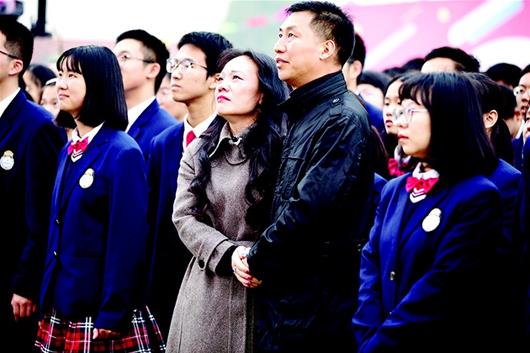 圖為:高二(14)班的黃貞霖(中)喊話媽媽“給我生個妹妹”