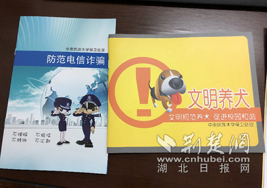 荊楚網客戶端-荊楚網消息(記者陳泉 通訊員黃嵩)2月26日,武漢市公安局東新分局和中南民族大學組織了一場“平安校園行”活動,把精心準備的“開學大禮包”——防騙、禁毒、防搶、交通、消防等8種宣傳手冊和中國結以及印有警察標識的鑰匙扣送到民大學子手中。