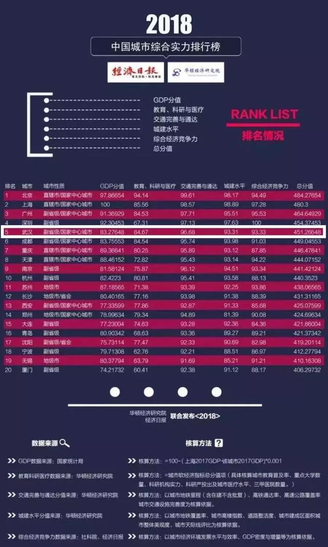 2018城市綜合實力最新排名,武漢排在北上廣深之后成為“中國第五城”!“北上廣深武”真的來了!