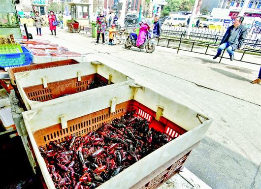 蝦館紛紛退出“正月檔”,販賣小龍蝦的批發商們也推遲了新蝦批量上市的時間。昨天上午,記者在華南海鮮市場里看到,只有少數幾家檔口擺出了小龍蝦,數量并不多,生意也略顯冷淡(如圖)。