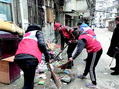 圖為:孝南區(qū)三里棚社區(qū)組織社區(qū)矯正人員開展義務(wù)清潔家園活動。(視界網(wǎng)肖蘭萱攝)