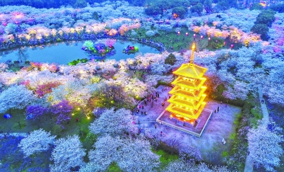 9000多個(gè)燈組點(diǎn)亮東湖櫻花園,夜櫻如夢(mèng)如幻