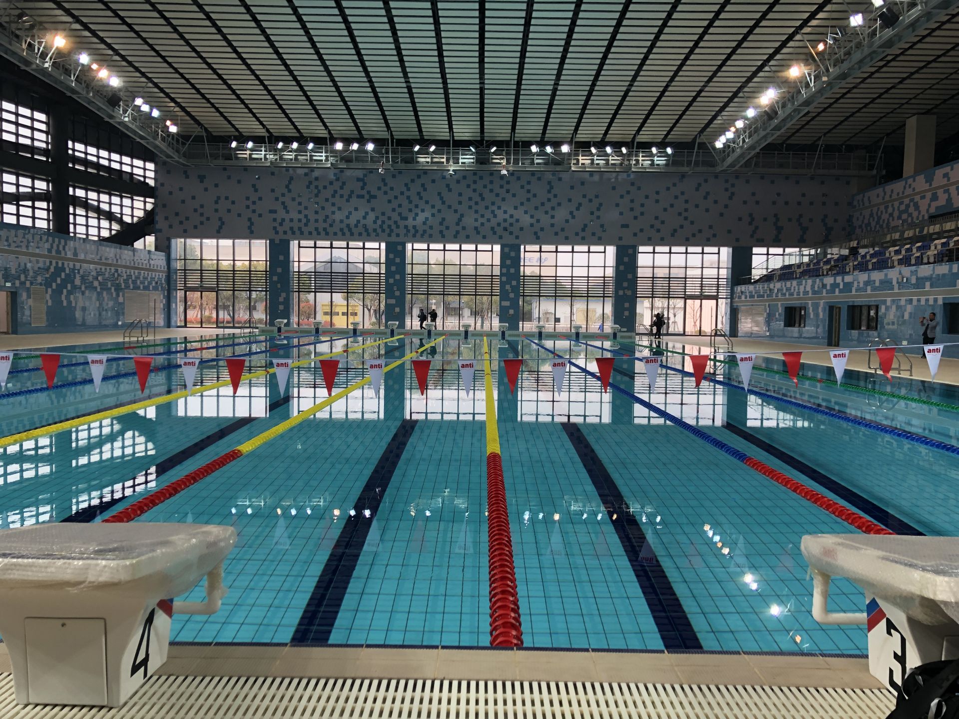 同時,作為全湖北省唯一與國際比賽接軌的甲級游泳館,武漢商學院游泳館于2017年5月動工,2018年11月完工。除了滿足比賽需求以外,武漢商學院游泳館致力于為運動員提供更好的比賽環境。比賽池上空采用從香港引進的水利產品一一天平板空間吸聲體,保證混響時間小于2.5秒,避免噪聲干擾比賽。同時,游泳館中暗藏許多“黑科技”:仿水波紋幕墻系統、仿裝飾空間吸聲系統、BIM+屋面焊接球網架整體頂升系統、采光孔+海綿城市建設術等,都是游泳館場館建設的科技亮點。