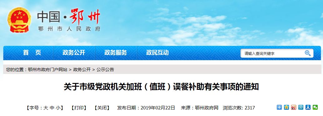 截至目前,湖北已有十堰、鄂州、孝感、荊州等地下發了《關于市級黨政機關加班(值班)誤餐補助有關事項的通知》↓↓↓