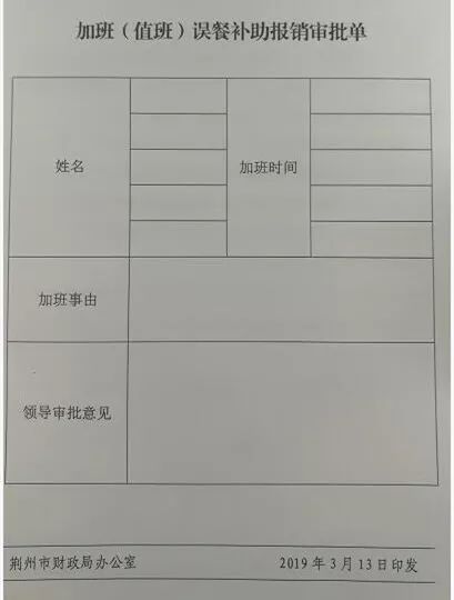 加班(值班)誤餐報銷審批單(圖片來源:荊州市農業農村局網站)